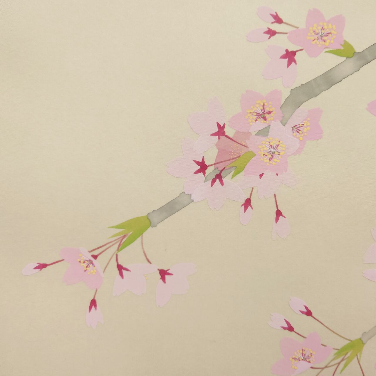 ほんのりとしたピンク色が広がる桜の花が、静かに咲き誇る優しい一幅です。柔らかな色合いで描かれた桜の花々が、春の温かな空気を感じさせ、心を癒やしてくれます。