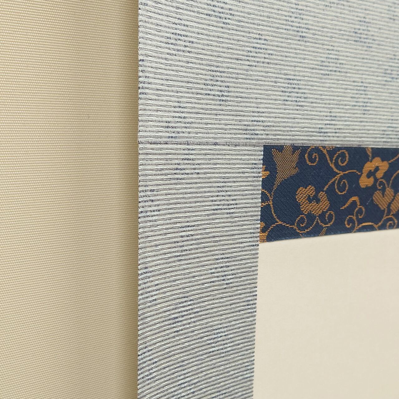 伝統的な仕立てながらも大胆なコントラストのこの掛軸は、和室にも洋室にも調和し、空間に洗練された彩りを添えます。