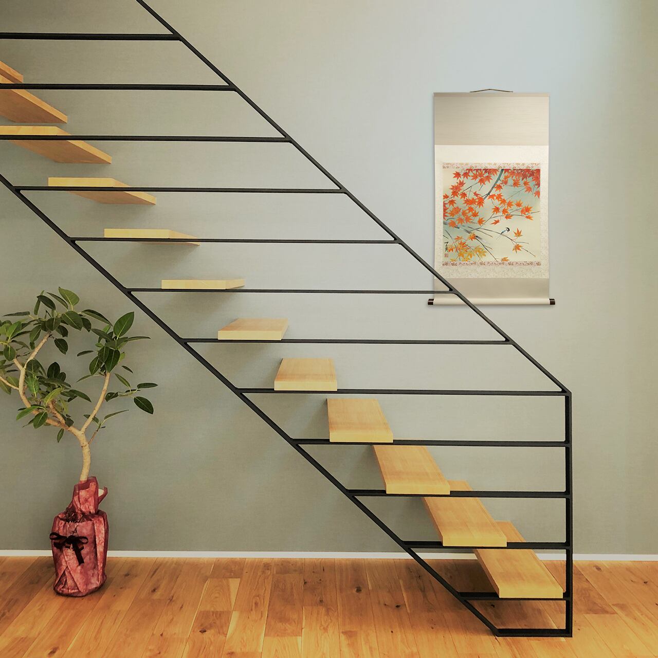 鮮やかに赤く染まった紅葉の葉に、一羽の四十雀(しじゅうから)が静かに留まっています。秋の深まりを感じさせる紅の色彩と、愛らしい鳥の姿が調和し、豊かな季節感を演出。温かみのある色合いが和の空間に彩りを添え、心に安らぎをもたらします。