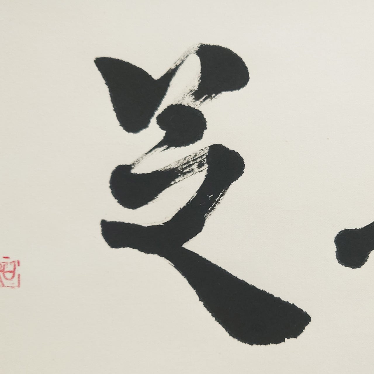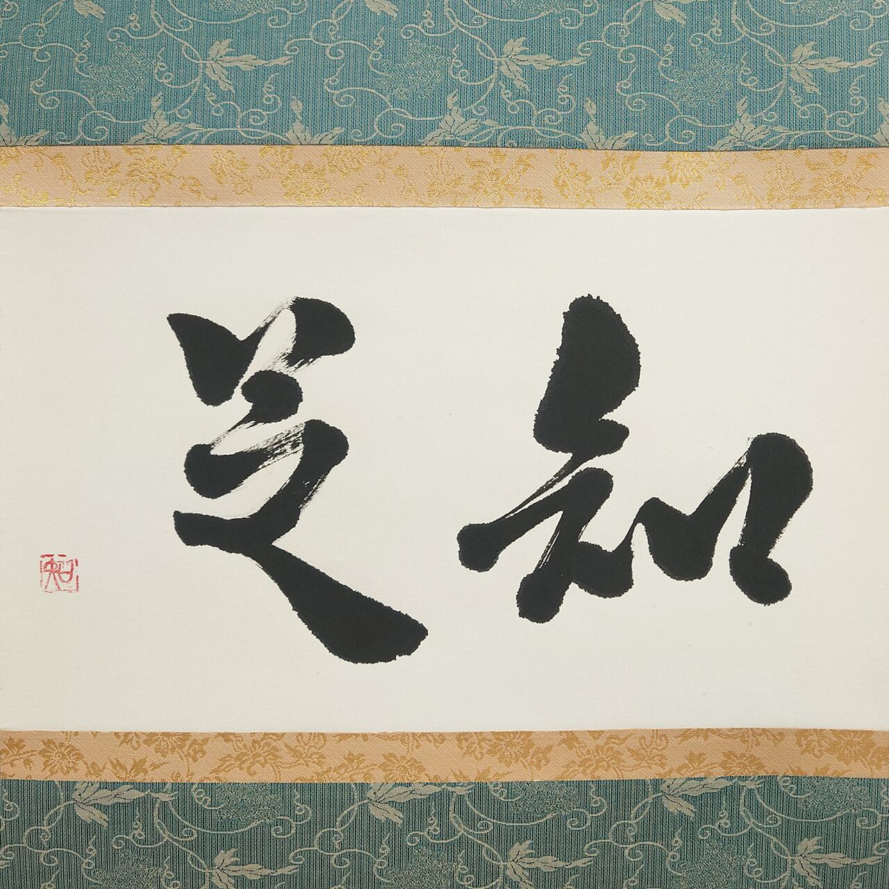 「知足」とは、いまあるものに満ち足り、心安らかに生きるという仏教の教えを表す言葉です。力強い筆致の中に余白の美が息づき、その精神性を静かに伝えます。
